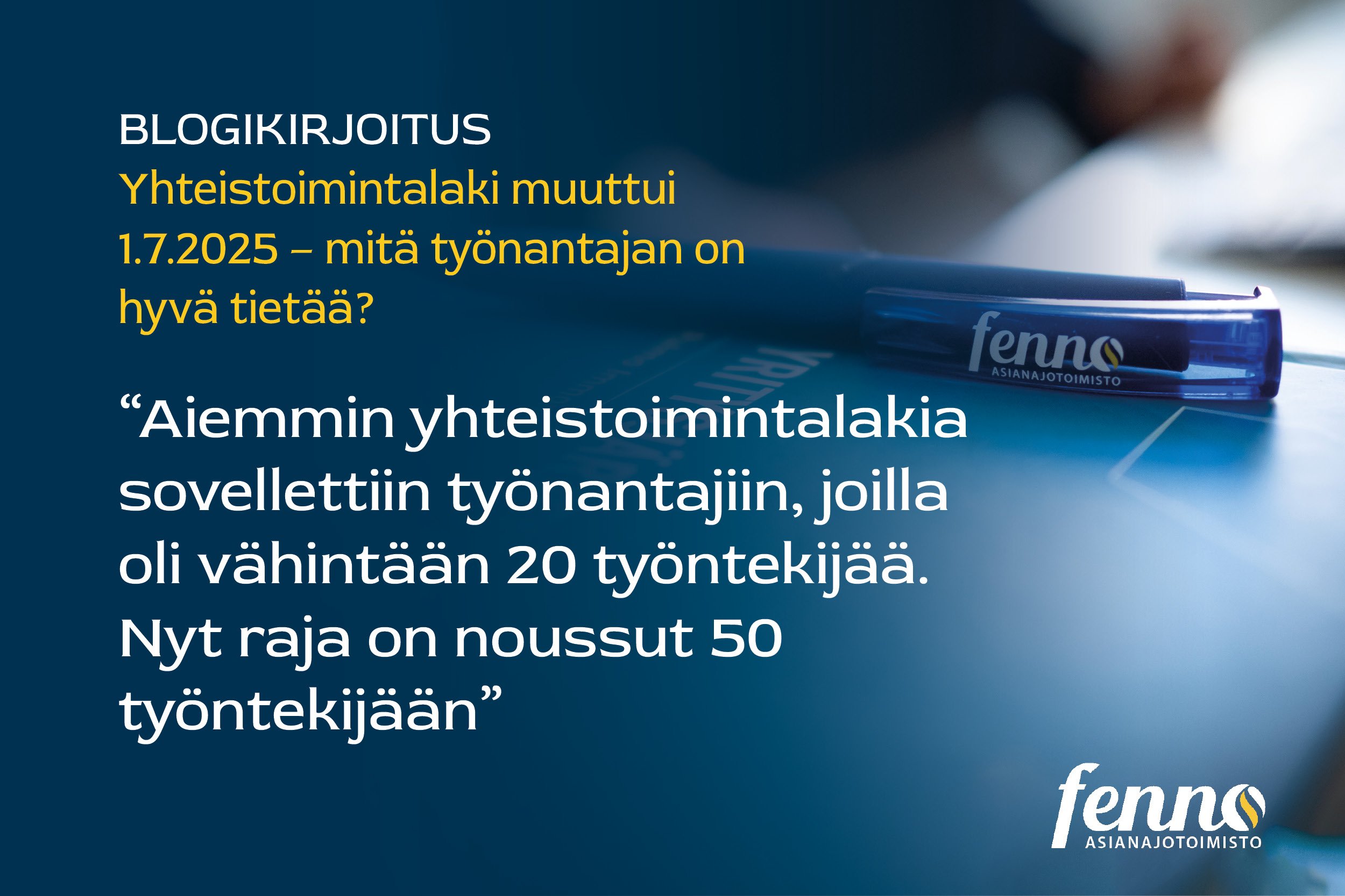 Mikäli yhteistoimintalain muutokset tai niiden käytännön vaikutukset herättävät kysymyksiä, Asianajotoimisto Fennon asiantuntijat auttavat sinua mielellään. Ota rohkeasti yhteyttä, niin etsitään yhdessä juuri teidän tilanteeseen sopiva ratkaisu.